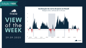 Quase dois anos atrás, inauguramos o View of the Week analisando a inversão da curva de juros nos EUA e seu vínculo com o risco de recessão — tema que, embora recorrente, não se concretizou naquele período. No Brasil, a trajetória foi semelhante: a atividade mostrou resiliência e frustrou sucessivas projeções de desaceleração. Agora, os dados parecem apontar de forma mais clara para uma perda de fôlego da economia, refletida também na curva de juros.